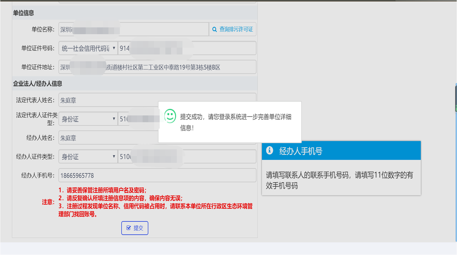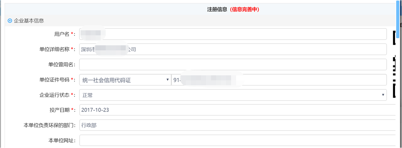 提交完成登入系統(tǒng),點(diǎn)擊注冊(cè)信息完善